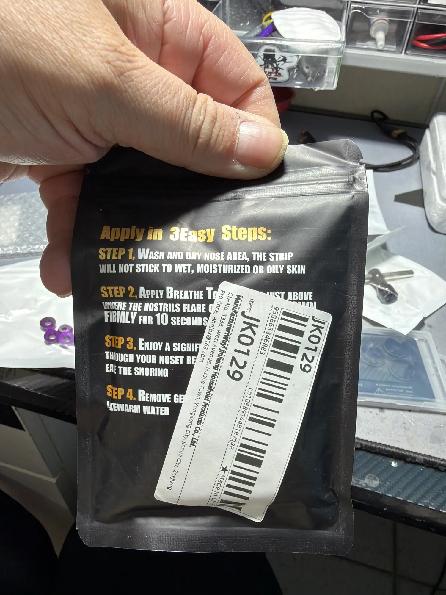 2. Apply: Center the strip across the bridge of your nose.